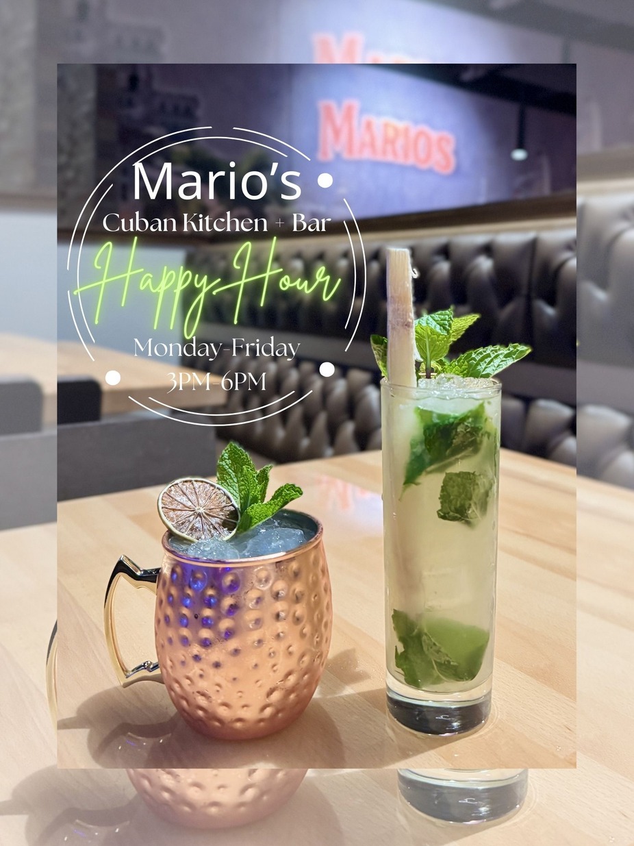 "Monday Mojito special All mojitos $8 I 4PM-6PM start your week the cuban way"